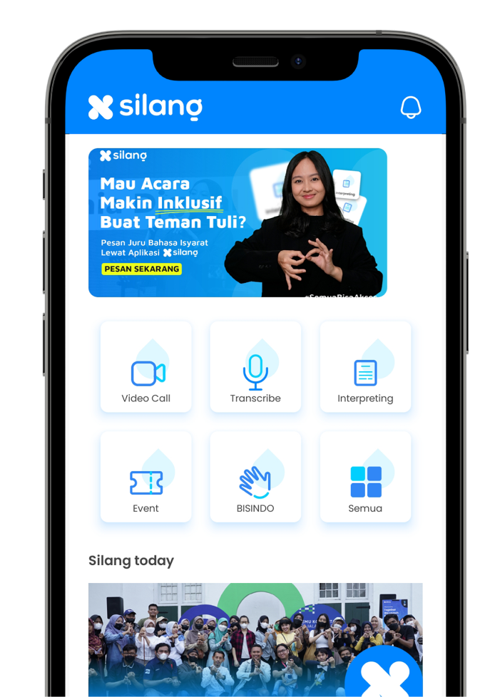 Silang.id merupakan startup yang bergerak untuk meningkatkan aksesibilitas Tuli melalui layanan Juru Bahasa Isyarat. Selain itu kami juga memiliki program pemberdayaan Tuli untuk meningkatkan SDM Tuli.